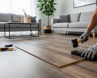 Installation of decorative vinyl flooring that combines aesthetics, comfort, and durability. An excellent option for homes and businesses looking for a modern and functional alternative.